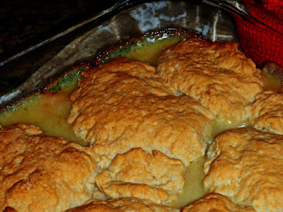 Pour into a casserole dish, or deep pie pan. Top with biscuit mix and cook for 30 minutes